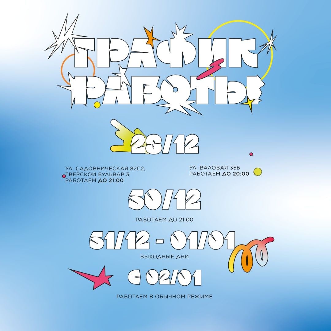 Привет! Публикуем изменения графика работы концепт сторов в праздничные дни
