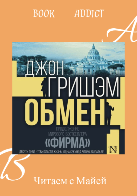 Спасти нерядовую Джованну Джон Гришэм из писателей, которым везет с экранизациями, не все хороши одинаково, но "Клиент" с Сюзен Сарандон и "Фирма" с молодым красавчиком Томом Крузом отличные. Новый роман возвращает к его герою, Митчу Макдиру, молодому юристу, который попав на работу в юридическую фирму, как выяснилось, обслуживающую интересы преступного синдиката, сумел не только избежать тюрьмы, но выйти из смертельной ловушки с "грязными" деньгами в оффшоре (которые оставил себе в качестве компенсации за моральный ущерб). "Обмен" - Митчу под сорок, он партнер в международной юридической фирме "Скалли" с личным офисом в манхэттенском небоскребе. По-прежнему в счастливом браке с Эбби, она занимается редактированием кулинарных книг, мода на которые повально накрыла нью-йоркских поваров (все знают. что Большое Яблоко город ресторанов). А поскольку в жизни Эбби с Митчем был период после "Фирмы", когда они путешествовали по миру, несколько лет прожив в Италии, где в совершенстве овладели