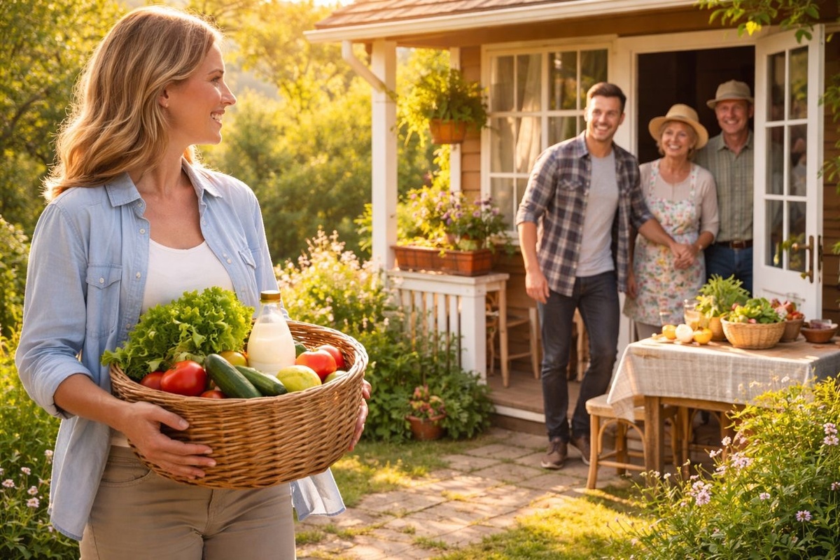 Инна села на скамейку у веранды, открыла сумки и улыбнулась: всё было так, как муж любил: хлеб тёплый, молоко свежее, яблоки блестящие. И хоть её приезд был неожиданным, она почувствовала тепло дома, которое муж всегда приносил с собой.
