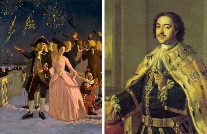…Год 7208-й от сотворения мира должен был начаться, как обычно, с 1 сентября. Но не тут-то было. Россия перешла на летоисчисление от Рождества Христова. Поэтому следующим годом стал 1700-й. Причина переноса — желание государя выстраивать более тесные дипломатические отношения с западноевропейскими странами, среди которых он искал союзников для военных походов. Монаршей волею было приказано: «С сего числа перестать дурить головы людям и считать Новый год повсеместно с первого генваря. В честь Нового года учинять украшения из елей, детей забавлять, на санках катать с гор. А взрослым людям пьянства и мордобоя не учинять — на то и других дней хватает». Изначально нововведение царя встретило сопротивление: люди неохотно отказывались от привычного порядка празднования. Но указ был непреложным. Петр I лично объезжал московские дома со свитой, принимая радушный прием и угощения. Целую неделю по его приказу в столице царило веселье – на улицах горели костры, устраивались гуляния. Первый зимний