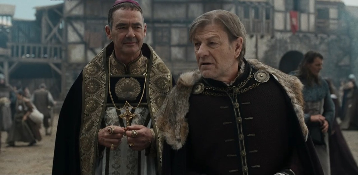 Хотя даже ханжу-епископа это напрягло, и он потом спрашивает у шерифа - «Генрих не склонен к милосердию, но действительно ли он такой изверг?» На что получил ответ - «Не видал его в бою?» А это здесь причем? Епископ не про боевые умения спрашивал, а про то, действительно ли король может начать резать ни в чем не повинных собственных подданных.