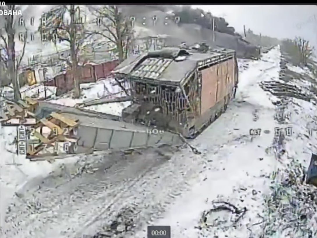 Импровизированный мостоукладчик на базе танка Т-80БМВ во главе очередной механизированной колонны очередного печального окончившегося