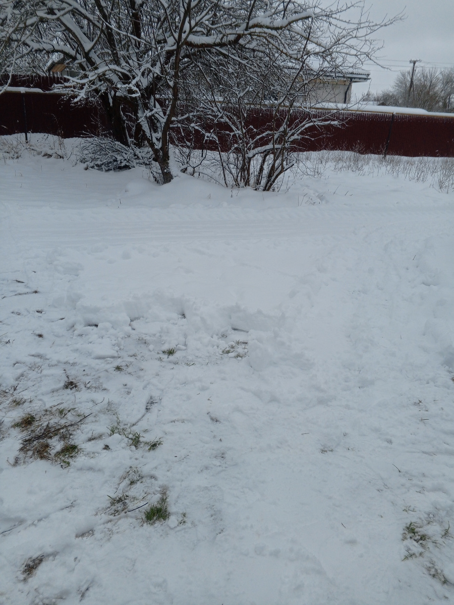 Немного погребла снежку, нравится мне снег убирать, единственное он сырой и тяжелый сейчас
