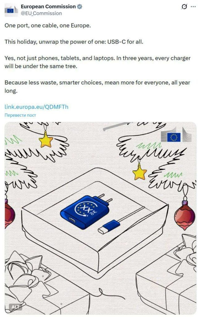 Благие намерения Еврокомиссии по унификации зарядных устройств обернулись грандиозным PR-провалом. Пытаясь прорекламировать переход всех портативных гаджетов на единый разъем USB Type-C, чиновники из Брюсселя выбрали девиз, который вызвал у пользователей крайне неприятные исторические ассоциации. «Один порт, один кабель, одна Европа» (One port, one cable, one Europe) — именно таким слоганом ЕК сопроводила пост о введении единого стандарта в своих официальных соцсетях. Однако вместо радости от избавления от лишних проводов, интернет-пользователи увидели в этой фразе пугающее сходство с ключевым нацистским лозунгом: «Ein Volk, ein Reich, ein Führer» («Один народ, один рейх, один фюрер»). Пока в Брюсселе гордятся технологической «победой», соцсети полнятся мемами и критикой в адрес копирайтеров, которые, похоже, прогуливали уроки истории. Ранее мы писали, что Брюссель снова раскручивает военный маховик.