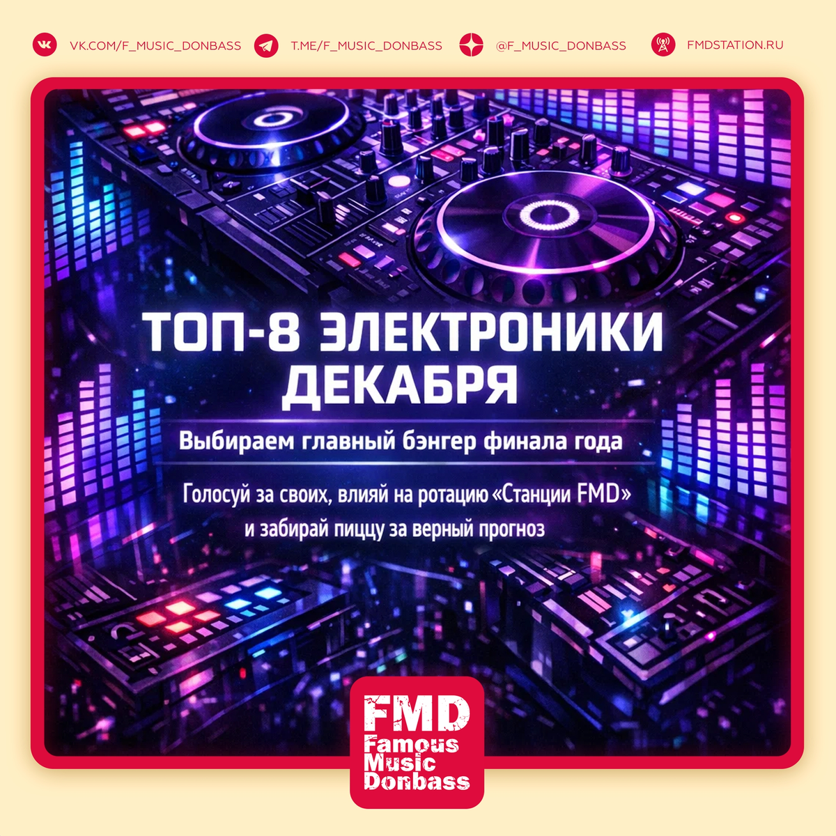 В этом месяце электронные артисты Донбасса выпустили 18 синглов. Отобрали традиционную восьмёрку самых интересных треков и приглашаем вас выбрать фаворитов. Пятидневное голосование среди наших подписчиков за лучший трек проходит здесь. Результаты учитываются при наличии 10 и более голосов! Результаты голосования будут учтены в «Главном чарте Донбасса». Четырём участникам с наибольшим числом голосов начислим от 1 до 8 баллов. Голосуйте и выигрывайте! Что на кону в этом чарте: Полные правила конкурсов и условия получения призов читайте здесь. Слушаем поп-чарт декабря: Голосуйте за лучший трек: