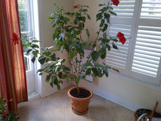 Гибискус в неправильных условиях быстро теряет свою привлекательность. Он вытягивается, оголяет нижнюю часть ствола, формирует длинные тонкие побеги и выглядит как случайно выросшее дерево без чёткой формы.