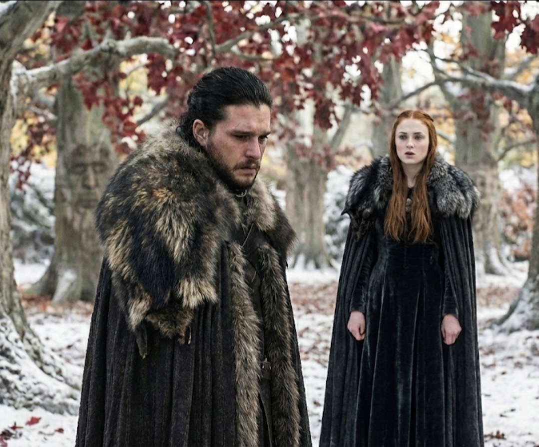 Джон, вероятно, забудет, что произошло в лесу и что ему снилось о волках, но он испытает сильнейший шок, увидев Сансу Старк, из всех людей, проходящую через эти врата. Она приехала на край света, чтобы найти ЕГО. Он поймет, что чуть не стал жертвой убийства, убив не ту сестру.