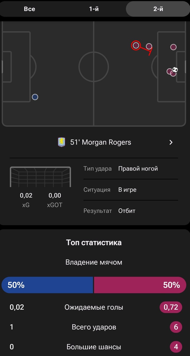 Итог по xG: 0.02 — 0.72 @lookatfacts