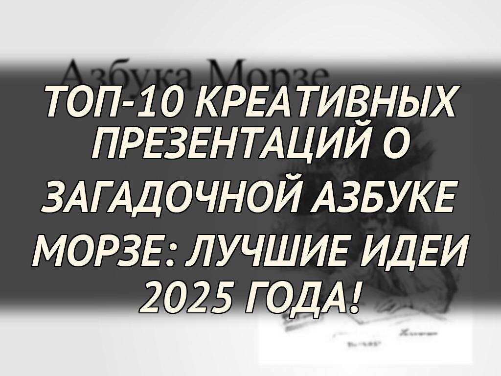 В этой статье мы собрали топ-10 лучших презентаций, посвященных Азбуке Морзе, которые выделяются креативностью, глубиной анализа и визуальным оформлением. Эти работы, созданные энтузиастами и профессионалами в 2025 году, не только объясняют принципы МТО, но и демонстрируют его применение в искусстве, образовании и даже в вузовных проектах, вдохновляя на новые открытия в мире кодирования и коммуникации.