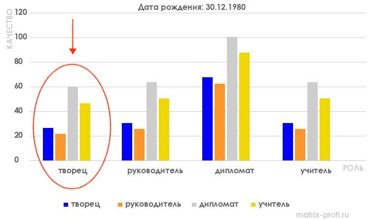 Разобраться с темой денег и самореализации помогает один простой, но очень показательный инструмент — график ролей в матрице судьбы. Часто именно с него удобно начинать консультацию, потому что он сразу даёт человеку ощущение: «А, вот про что я». График отражает качества и роли, с которыми человек приходит в эту жизнь. Считается, что от рождения душа уже несёт определённый опыт — наработки прошлых воплощений. Этот опыт никуда не исчезает: он либо раскрывается, либо остаётся нереализованным. Условно можно выделить четыре базовые роли: Это люди, которые умеют: Часто это креативные, изобретательные люди. Не обязательно художники или дизайнеры — творцом может быть человек в любой сфере, если он создаёт, а не просто повторяет. Руководитель — это не обязательно бизнесмен или начальник по должности. Это прежде всего тип характера. Такие люди: Исторически руководители были воинами — теми, кто принимал решения и отвечал за результат. Сегодня такие люди часто становятся управленцами и в бизнесе,
