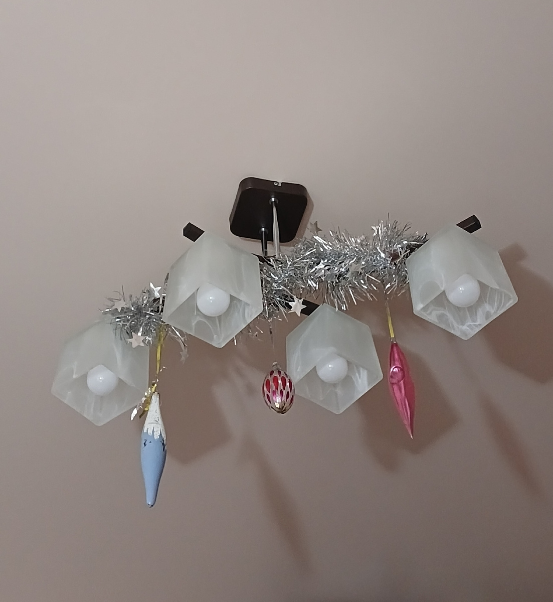 Сегодня начали, наконец, украшать квартиру. Приезжали сын с невесткой. У себя они нарядили вчера, сегодня у нас поставили елочку и повесили гирлянды. Дел еще много, но начало положено.