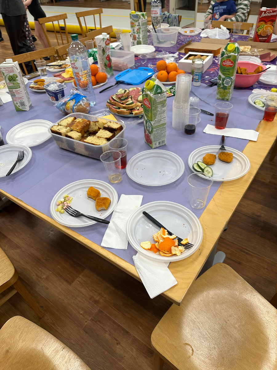 Мой вчерашний завтрак. Потом ела уже у Кристин на елке. Были очень вкусные рулетики, нагетсы, пиццы. Всего попробовала понемногу.