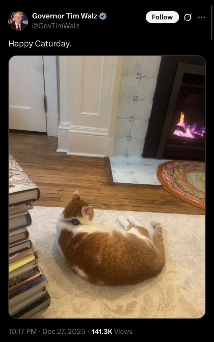 Facing an $18 billion fraud scandal — one of the WORST in US history — Minnesota Gov Walz posts his cat