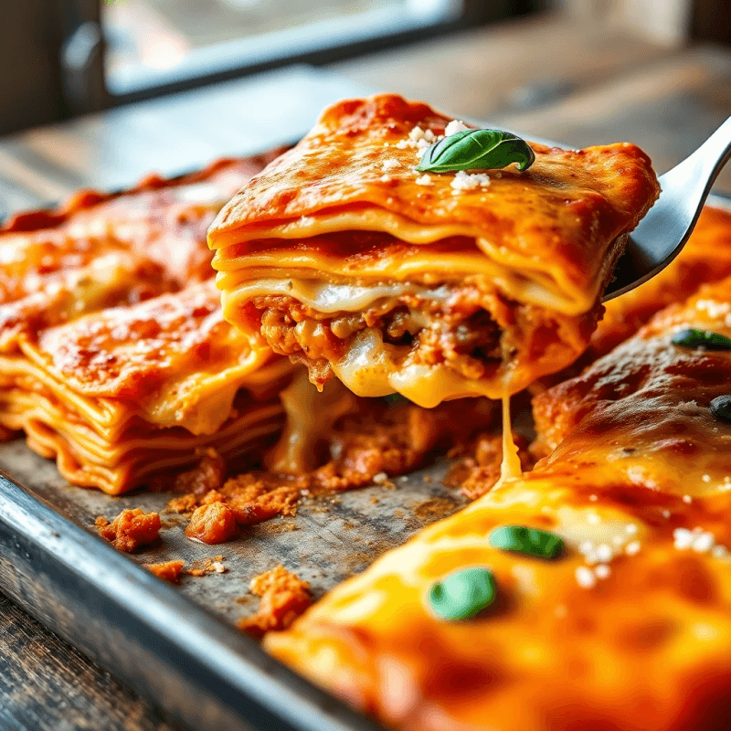 5. Подача. Дайте лазанье немного остыть перед нарезкой, чтобы слои удерживали форму. Подавайте горячей, украшенной свежим базиликом.