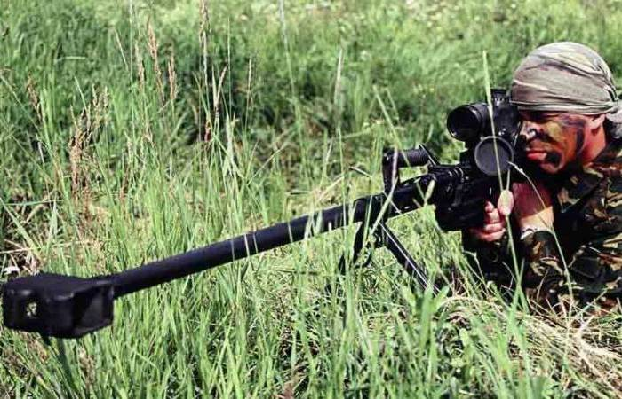 В Туле знаете ли не только самовары есть, что в очередной раз доказывает российская ОСВ-96. Честно говоря, назвать это винтовкой язык не поворачивается, ибо 96-я скорее походит на какую-то 13-килограммовую переносную пушку под патрон 12.7 мм. Которая ещё к тому же и самозарядная. При этом хотя винтовка и считается «антиматериальной», заточена она в первую очередь для уничтожения живой силы противника на дистанциях недоступных другому ручному огнестрельному оружию. Опытный снайпер может работать ОСВ-96 на дистанциях в 1.5-1.8 км. В случае острой необходимости, российская винтовка может питаться не только специальным снайперскими патронами, но и пулемётными. Если прижмёт, для ОСВ-96 можно смело распотрошить ленту «Корда» или «Утёса», дабы продолжить ведение огня по противнику и лёгкой бронетехнике. На протяжении многих лет ОСВ остаётся любимой «игрушкой» российских снайперов.