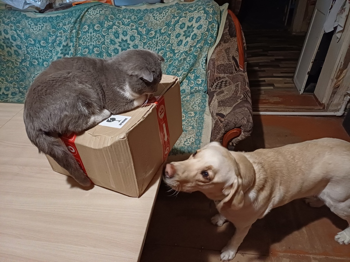 Вот и наступил в нашем доме Новый год. Не знаю, у кого как, а нам Дед Мороз принес подарки уже сегодня, за четыре дня до положенного срока. И никого не обделил!!! Коробка с первого взгляда внушала солидность габаритами и весом. Кото- и пёсоинспекция сразу заключили союз в попытке (безуспешной!) завладеть ею. А когда открыли мы посылку, то вообще все пришли в восторг. Уже на общем плане видно, что наша Снегурочка подошла к выбору подарка очень серьезно. Конечно, для меня, как для верного продолжателя идей Толкиена, лучшим подарком стала шикарная термобутылка с тематическим рисунком. А моя туристическая составляющая порадовалась от компактного, но удобного пледа для походов. Склонность к кулинарному авантюризму подогрели манговый мармелад, сушеное мясо и азиатские колбаски. Супруга получила в подарок упаковку необычного чая и бомбочки для ванн. Дети взвыли от счастья, увидев количество сладостей. Кот благосклонно принял в дар новогодние шуршалки и новую коробку, в которой можно с комфорт