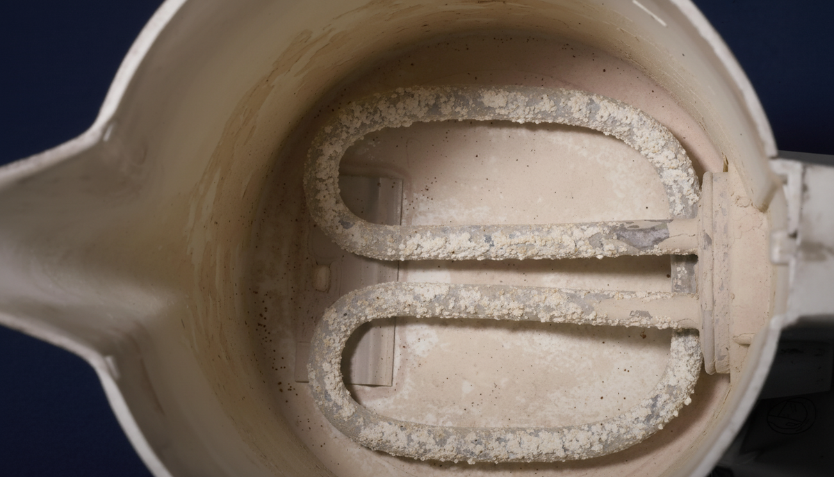 Накипь толщиной всего 3 миллиметра жрёт уже 25% электричества дополнительно. Ваш чайник буквально работает на износ, пытаясь прогреть воду через эту «шубу».