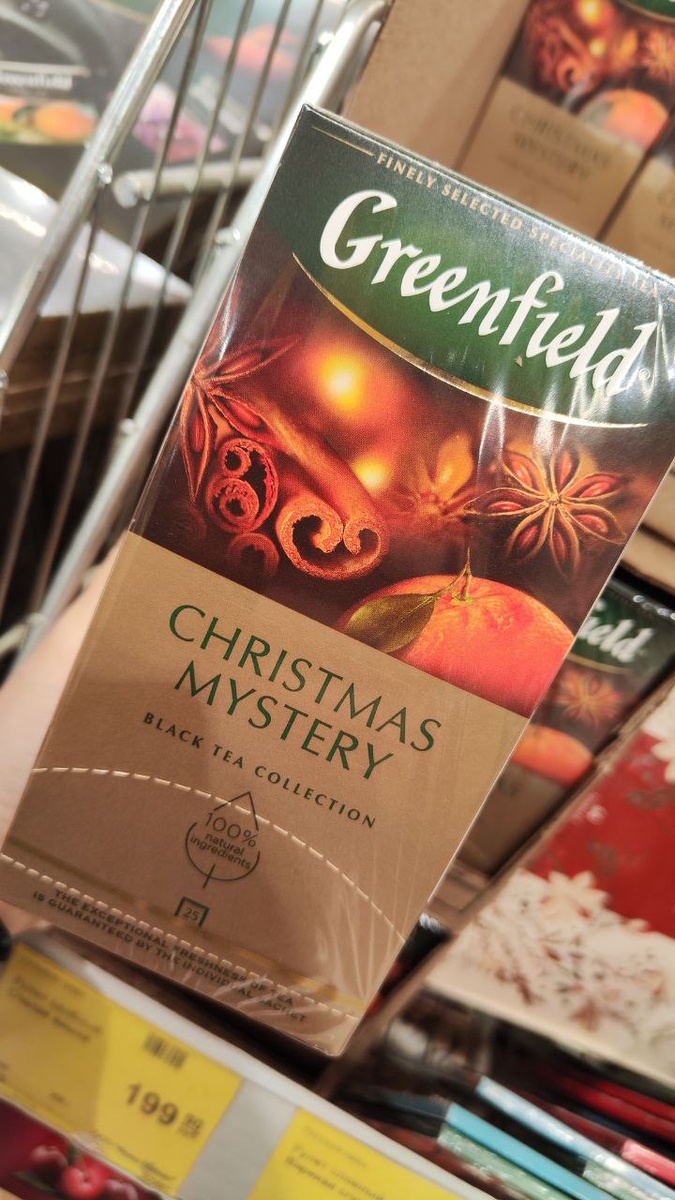 😘😁😄 По новогодним напиткам пока цвет что нашла чаек - Greenfield Christmas Mystery 🍊 Чаек - самое то для холодного сезона. Не все же нам кофе и какао пить😁 Чай черный, быстро заваривается, поэтому если не любите крепкий - не оставляйте завариваться его на долго. Специи (корица, имбирь, анис, гвоздика) отлично чувствуются в аромате и вкусе. У чая есть разогревающее послевкусие, за это #рекомендосьен. Вообще линейка Greenfield мне раньше нравилась чаем с ванилью, но его похоже сняли с производства, но этот достойная ему замена😉 А вы какой чай пьете?! Новогодние сладости. Часть 1➡️тут #НГсладость #десерт #обзореды #вкусняшка #сладкоежка #фудблог #фудобзор #россия