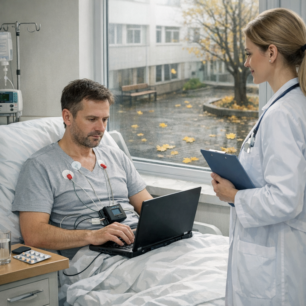 Госпитализация прошла быстро и без эмоций — чёткий механизм клиники, отлаженный годами. Максима поместили в палату на третьем этаже, с окном во внутренний двор, где ветер гонял по асфальту жёлтые кленовые листья. Его мир сузился до размеров комнаты, наполненной запахом хлорки, тихими звуками аппаратуры и собственным, теперь слишком громким, сердцебиением.