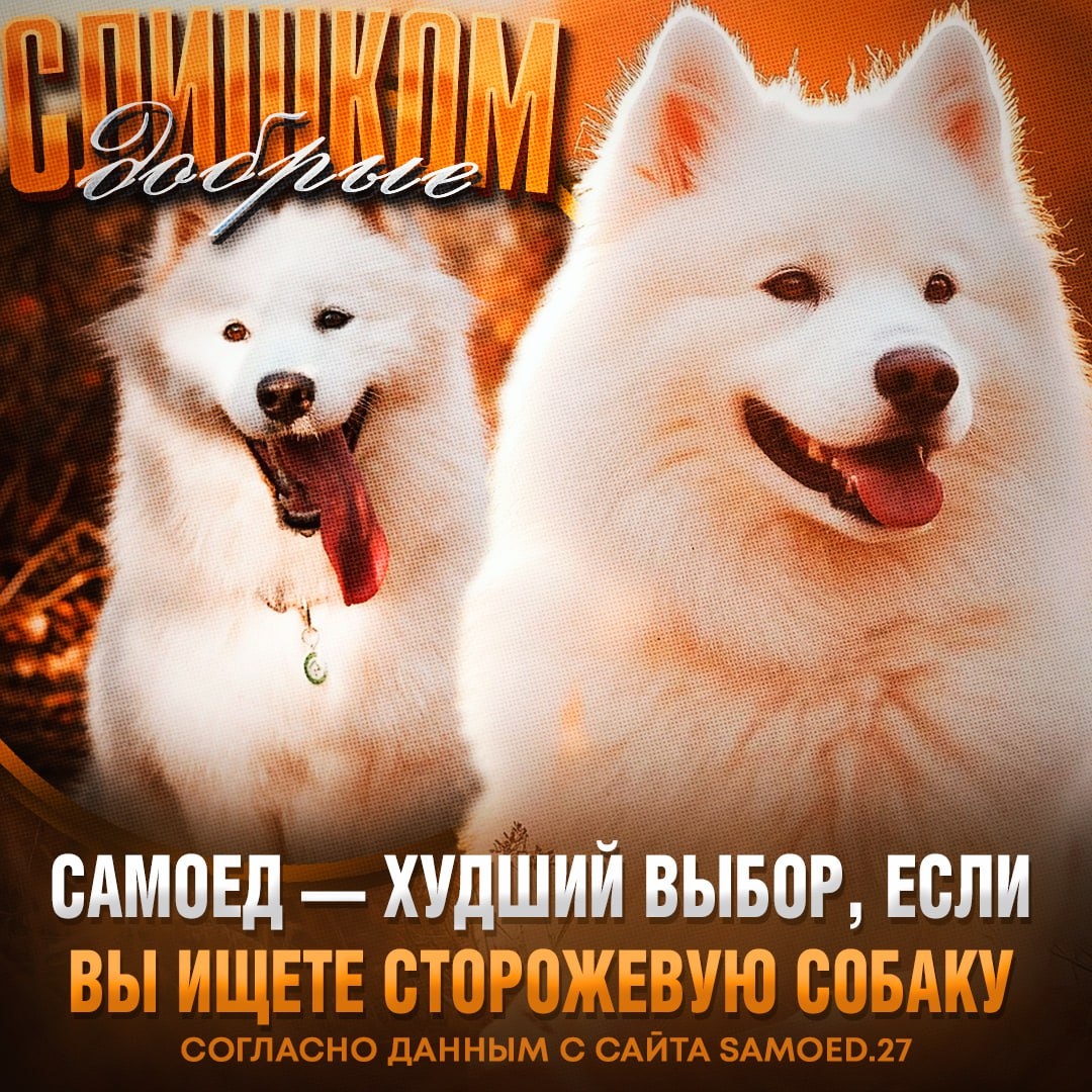 🥰 Эти пушистики — одни из самых дружелюбных созданий. Их так и называют — «улыбающиеся собаки». Но именно из-за этого они полностью бесполезны как охранники Вот в чем дело: ➖ Характер самоеда исключает агрессию. Незнакомца он встретит виляющим хвостом, а не лаем; ➖ У них нет подозрительности. Задача сторожевой собаки — насторожиться, предупредить об опасности. Самоед же по своей природе доверчив и не видит в людях угрозы ➖ Он будет усердно заливаться лаем, если что-то приближается к его территории, но дальше предупреждения дело не пойдёт; Однако! Это идеальные компаньоны для семей с детьми и другими животными. Они остаются игривыми и ласковыми до глубокой старости ❤️ — самая прелестная порода собак.. ❤️ — я бы любил этих милах просто за то, что они есть!!! Добрые новости✔️