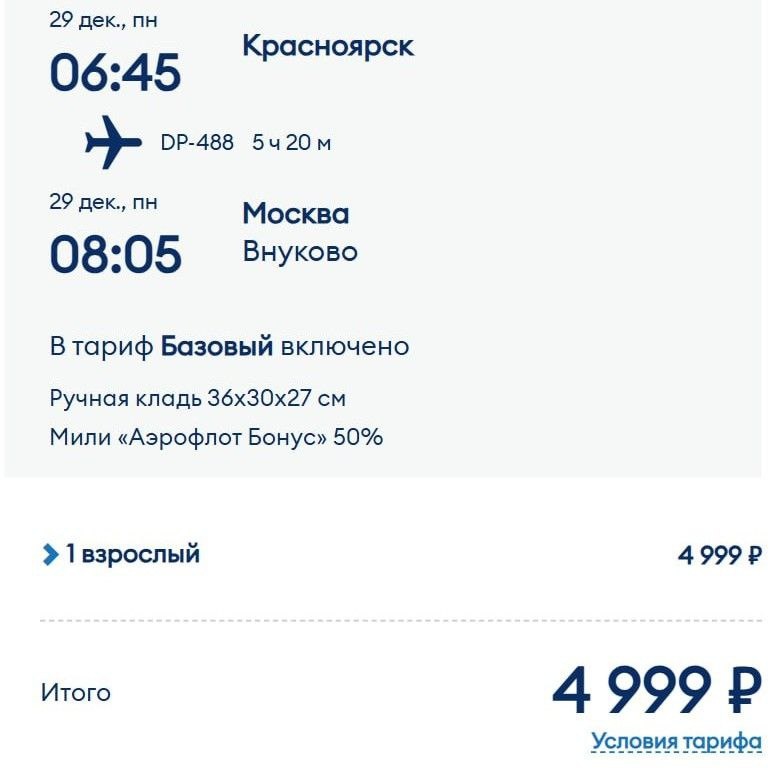 🛩 у Победы от 4999₽ (завтра)