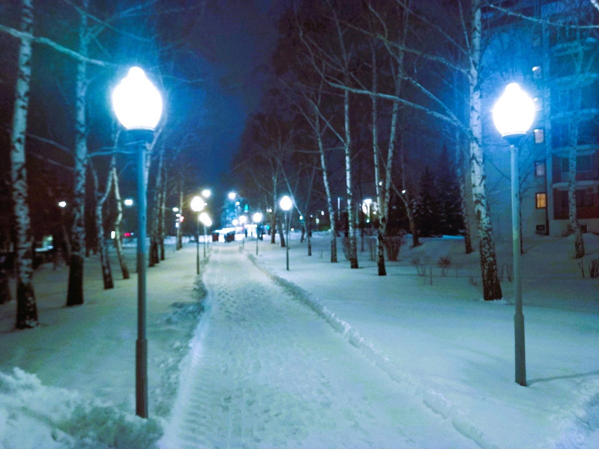 Когда работал на заводе, мы в нем играли заводские соревнования и просто ходили каждый четверг на группу здоровья, а после дружно пили пиво вот на этой лавочке. Тут поставили новые фонари и все выгляди в темноте немного загадочно..