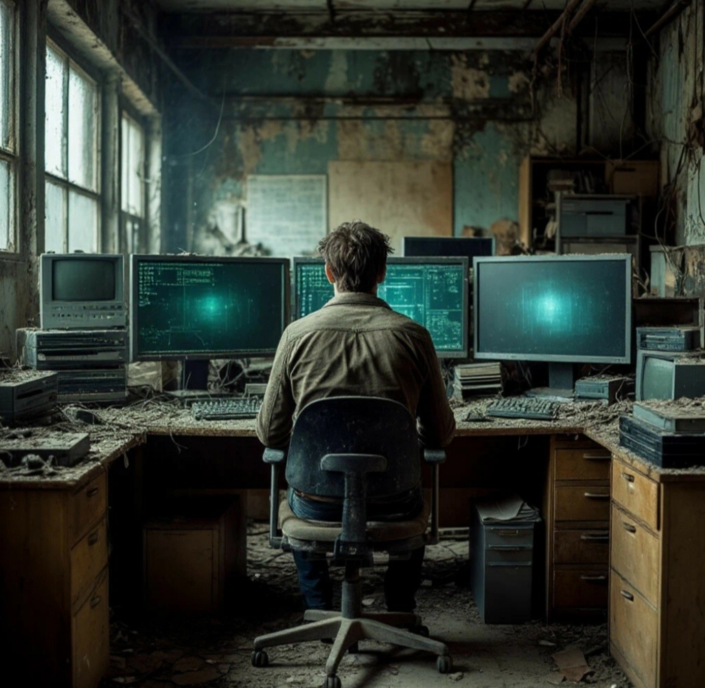 Через несколько минут щёлкнуло, и дверь со скрипом поддалась. Внутри пахло пылью, маслом и озоном. Помещение было огромным, заставленным реликтовым оборудованием: пульты с клавишами и рычагами, гигантские катушки с магнитной лентой, экраны с электронно-лучевыми трубками. В центре стояло кресло диктора перед массивным микрофоном. Пыль лежала толстым слоем, но индикаторы на главном пульте слабо светились зелёным — резервное питание всё ещё поступало.