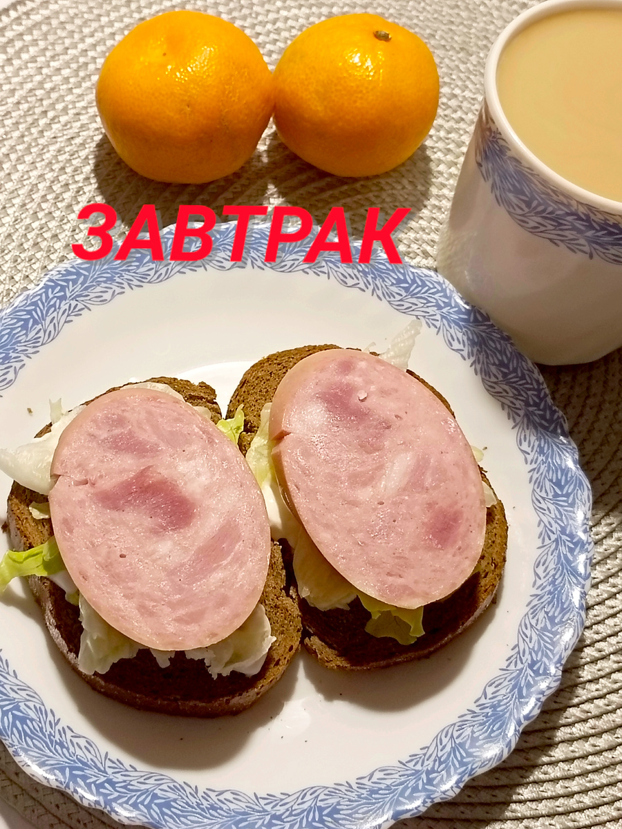 Сегодняшнее утро выдалось просто суматошным! Я чуть было не проспала на работу, но, к счастью, успела хоть что-то съесть. Правда, не свою любимую кашу, а пришлось довольствоваться быстрыми бутербродами. Намазала хлеб творожным сыром, добавила хрустящий салат айсберг и пару тонких ломтиков балыковой колбаски. Запила все это кофе с молоком и съела пару мандаринок.