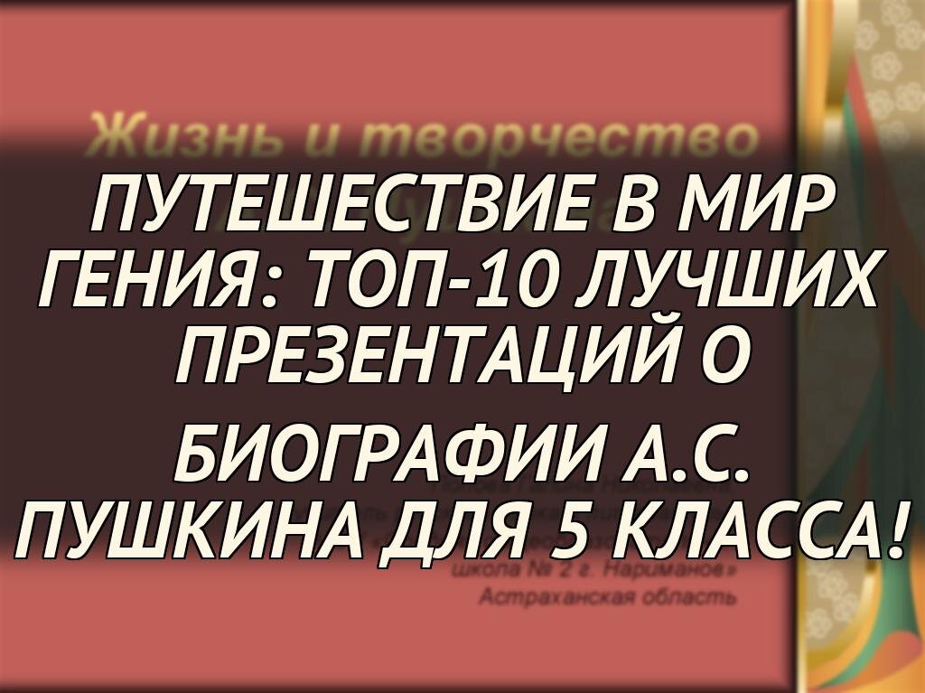В этой статье мы представляем топ-10 лучших презентаций на тему биографии А.С. Пушкина, предназначенных именно для учеников 5 класса. Каждая презентация тщательно отобрана по критериям ясности изложения, визуальной привлекательности и соответствия возрасту детей, чтобы увлечь их историей жизни поэта и вдохновить на дальнейшее изучение литературы. Читайте дальше, чтобы узнать, какие презентации помогут вашим пятиклассникам открыть для себя мир Пушкина.