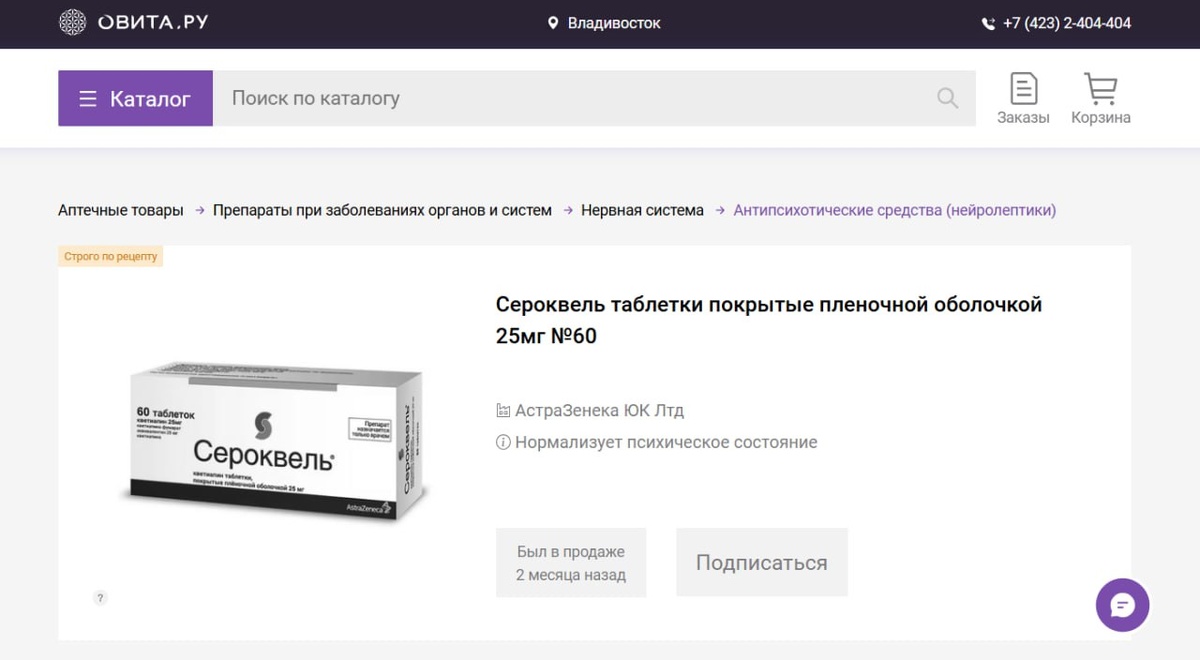 Приморцы все чаще стали сообщать о недоступности препарата «Сероквель» и «Сероквель пролонг», важного для людей с психическими