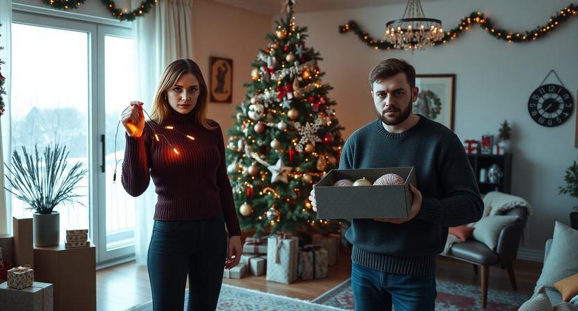 Дмитрий замер с коробкой гирлянд в руках. За спиной, в прихожей, уже разувалась его мать — без звонка, как обычно, с хозяйским шуршанием пакетов и короткими распоряжениями, которые она бросала в пустоту, будто квартира сама обязана была подчиняться.