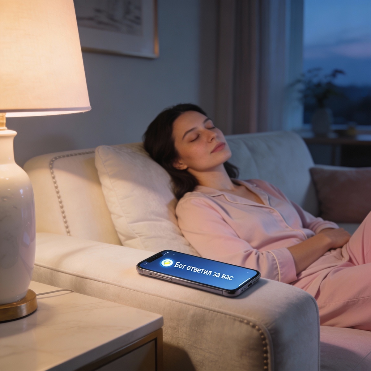 Пусть бот работает, пока я отдыхаю. Теперь клиент получает мгновенный ответ: «Спасибо за сообщение! Наш менеджер свяжется утром»,