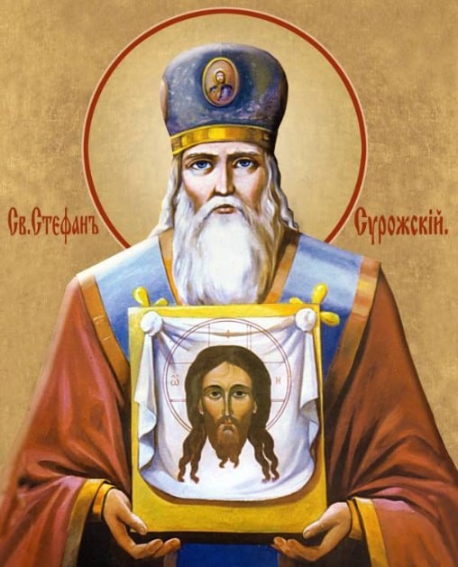 Святитель Стефан жил в VII — VIII веке, родился он в Каппадокии, получил образование в Константинополе. Приняв монашеский постриг, он удалился в пустыню, где подвизался на протяжении тридцати лет. Святой патриарх Герман, по откровению свыше, хиротонисал Стефана во епископа Сурожского. При императоре-иконоборце Льве III Исавре святитель претерпел мучения и был заключен в темницу в Константинополе. Когда император Лев скончался, жена его сына — нового императора Константина Копронима — упросила своего мужа освободить святителя Стефана. К концу своих дней святитель вернулся к своей пастве в Сурож, где и отошел ко Господу 15 декабря около 750 года. Также сегодня мы вспоминаем преподобного Трифона Печенгского и священномученика Илариона, архиепископа Верейского. Медный Колокол