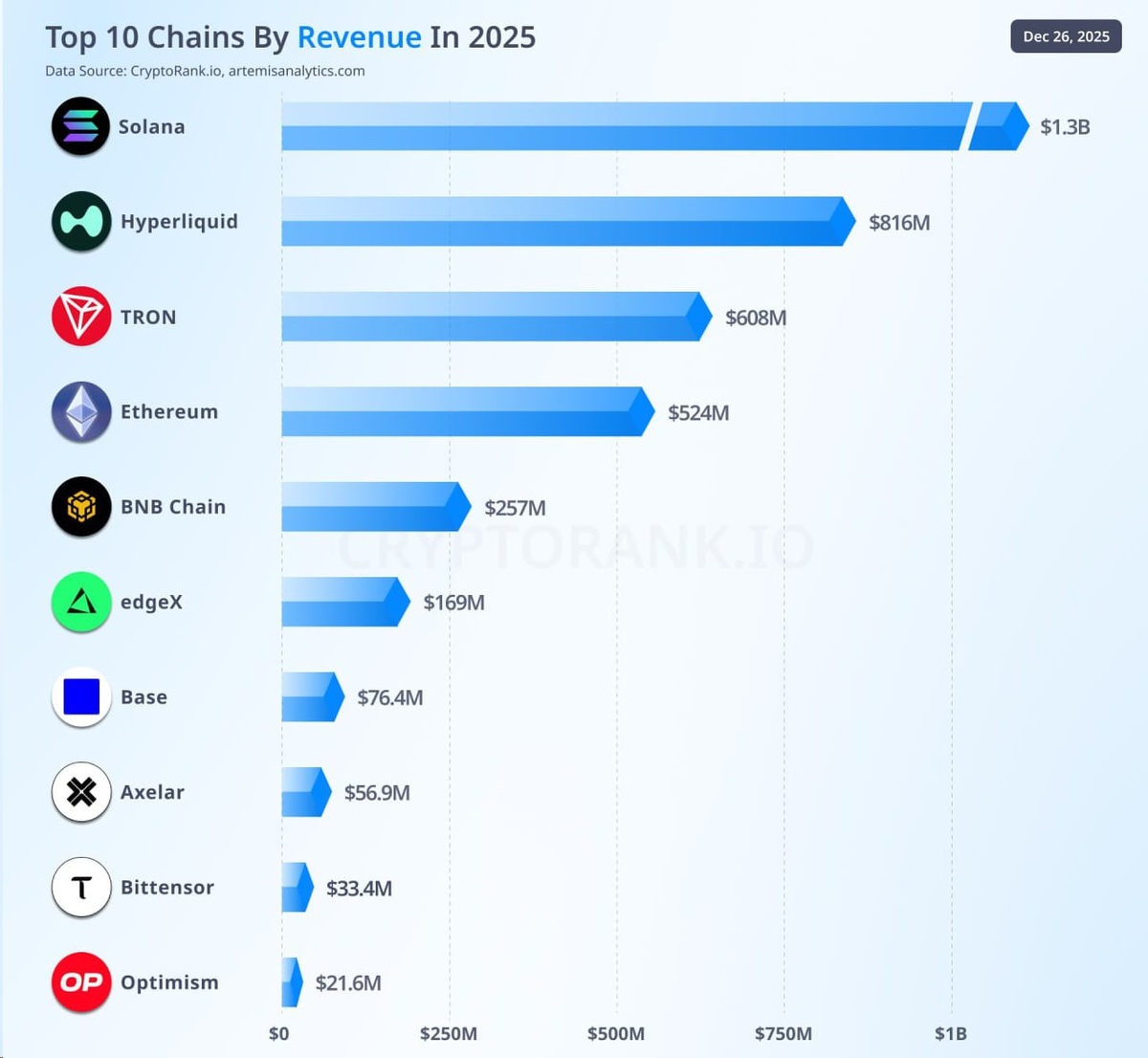 Solana стала абсолютным лидером по заработанной выручке среди топ-10 сетей в 2025г -- данные Cryptorank