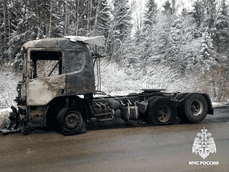 В Смоленской области на трассе сгорел седельный тягач