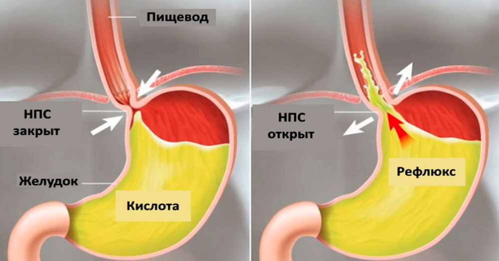 Когда нижний пищеводный сфинктер (мышечное "кольцо" между желудком и пищеводом) ослабевает или ненадолго расслабляется, кислое содержимое желудка забрасывается вверх (этот процесс называется гастроэзофагеальный рефлюкс).