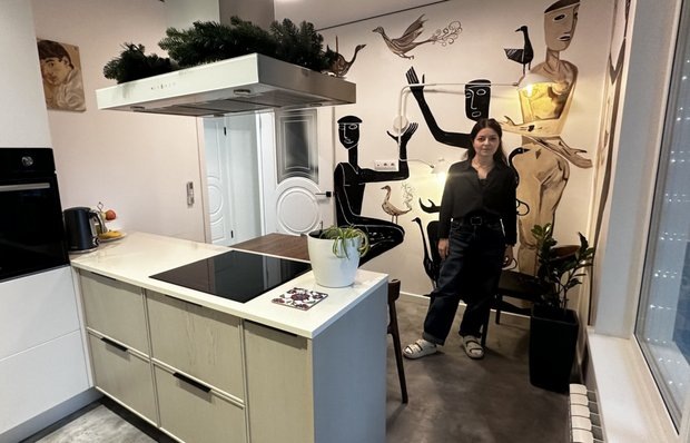 Продуманная квартира с островом на кухне и камином-библиотекой Как создать интерьер, который вам идеально подходит? Узнайте в нашем новом румтуре! Герой румтура: Евгения Гараба обустроила свою квартиру, в которой живет вместе с мужем и ребенком. Кратко о квартире: квартира находится в московской новостройке. На начало ремонта в ней была чистовая отделка, но Евгения все переделала. В квартире есть кухня, спальня, детская, коридор, два санузла. На кухне Евгения реализовала свою давнюю мечту: остров с вытяжкой, который позволяет ей готовить и общаться с гостями одновременно. Евгения нашла вдохновение в Pinterest и решила украсить пустую стену на кухне росписью. Художница перенесла задумку на стену, а финишное покрытие лаком защитило и подчеркнуло красоту. Оцените идеи по обустройству детской: двухъярусная кровать в форме домика, совмещающая игровую и спальную зоны, в сочетании с грамотно организованным хранением, позволила создать уютную и функциональную комнату. Чтобы разместить внушител