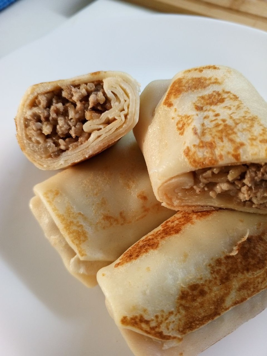 Жарим блины. Как обычно. Лук мелким кубиком обжарить, добавить ложку сливочного масла и полчайной ложки сахара, для карамелизации и более яркого вкуса лука. Фарш выложить к луку, обжарить. У меня ещё был рис с грибами, туда же. Так фарш нежнее. Ну и вкус. Дальше всё как обычно. Готовьте с удовольствием! #готовимдомавкусно #блинчики #фаршированные_блинчики #завтрак #ужин #выпечка #фарш #грибы #рис #мясо