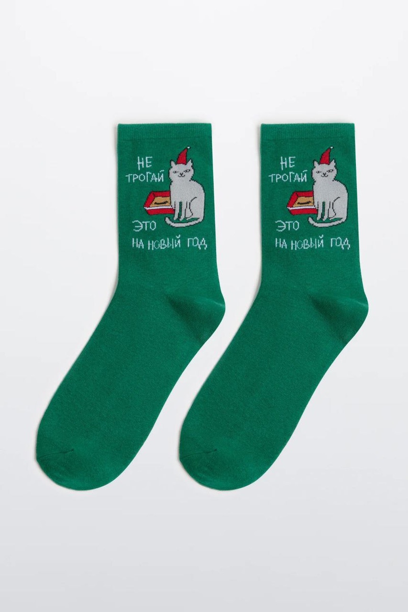 В Befree найдены носки с максимально новогодней вышивкой. Там котик и подарок от него.