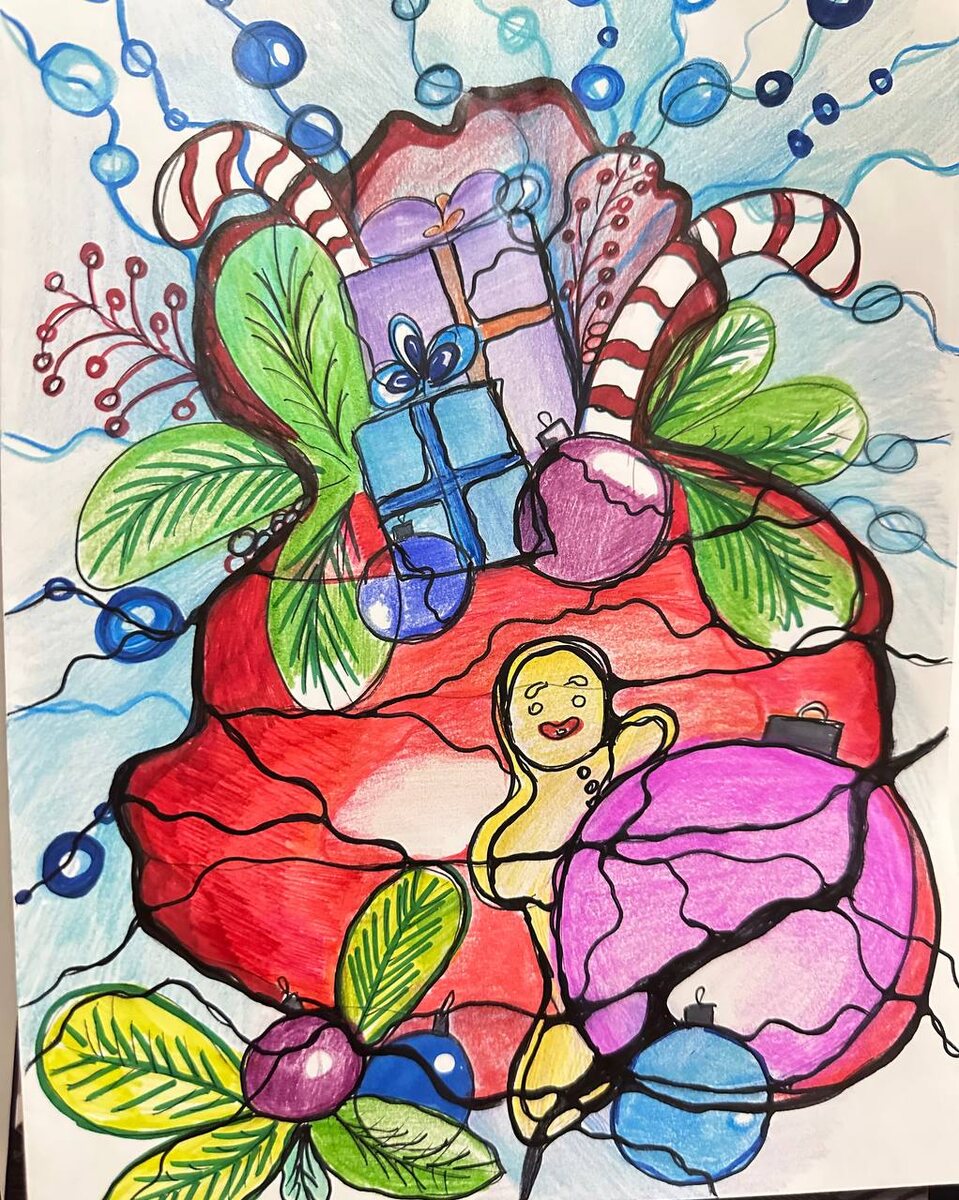 Огромная благодарность за волшебный подарок. Пока рисовала ощущение было, что я на одном из своих детских утренников в ожидании своего подарка от дела мороза