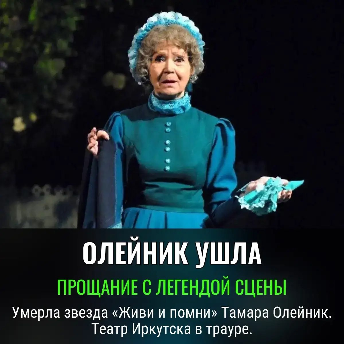 🎭 Знаменитая актриса Тамара Олейник, чей талант успел вывести иркутскую сцену из глубокой спячки, ушла 26 декабря