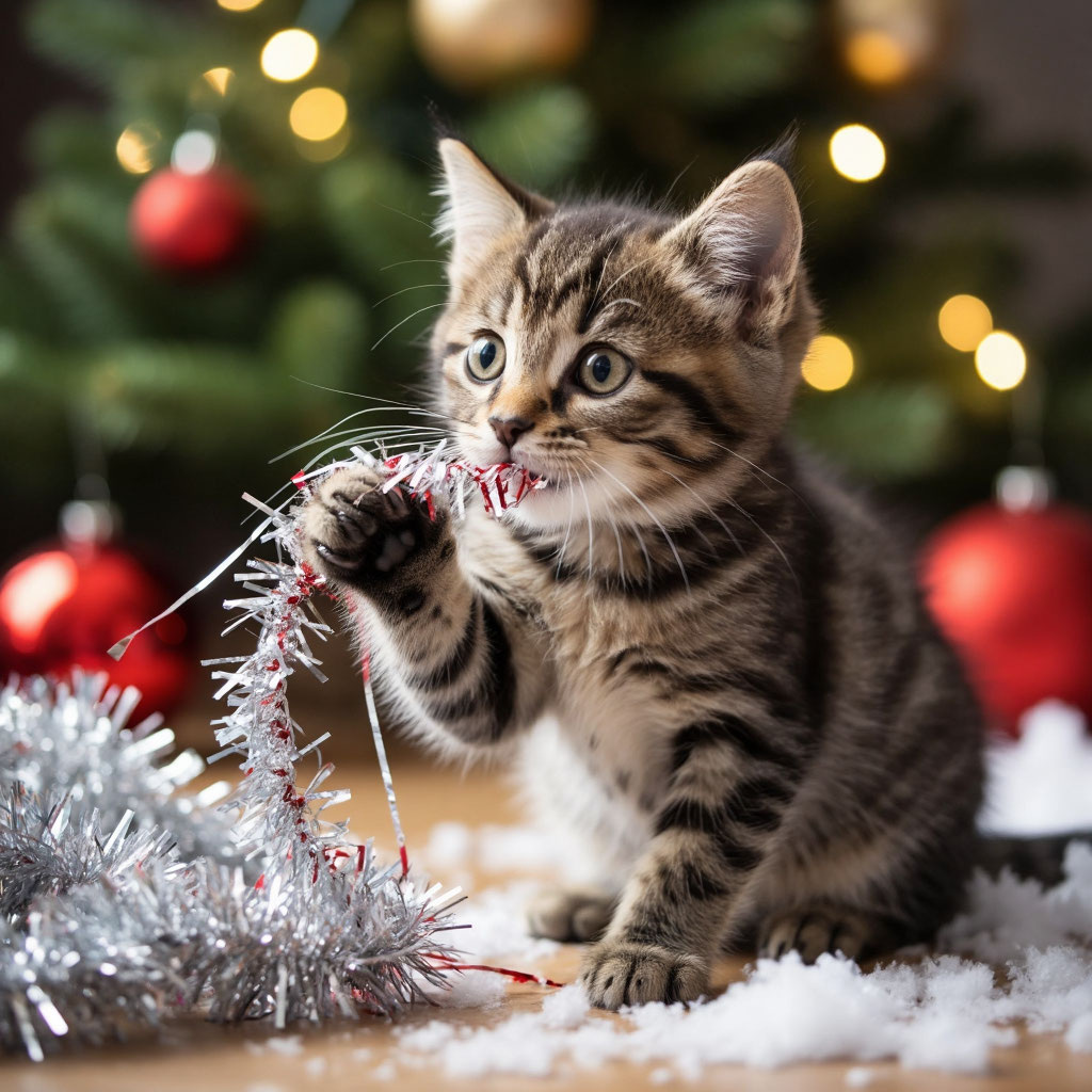 Привет, друзья! С вами снова я, хозяин четырёх усатых проказников: степенной Тонкс, которая обычно брезгливо смотрит на всю эту новогоднюю мишуру; хитрющей Рыськи, жующей блестяшки с интересом гурмана; хулигана Моти, который видит в дождике врага, которого нужно победить; и игривого Рикардо, воспринимающего всё сверкающее как личный вызов. И сегодня — тема, актуальная для всех любителей котиков и красивых праздников: а что, если пушистый друг всё-таки съел этот блестящий, шелестящий дождик или мишуру? Почему это так опасно? Не просто "выйдет естественным путём" Здесь включается наш главный инстинкт — "а вдруг вкусно?". Мишура блестит, шелестит, колышется — идеальная "добыча" для охотника. Но проблема в материале. Это не трава. 1. Острые края: Мишура (особенно старая или низкокачественная) может иметь микроскопические острые края, которые, как пила, травмируют слизистую желудка и кишечника. 2. Нерастворимость: Пластик или фольга не перевариваются. Они могут создать "пробку" в кишечнике