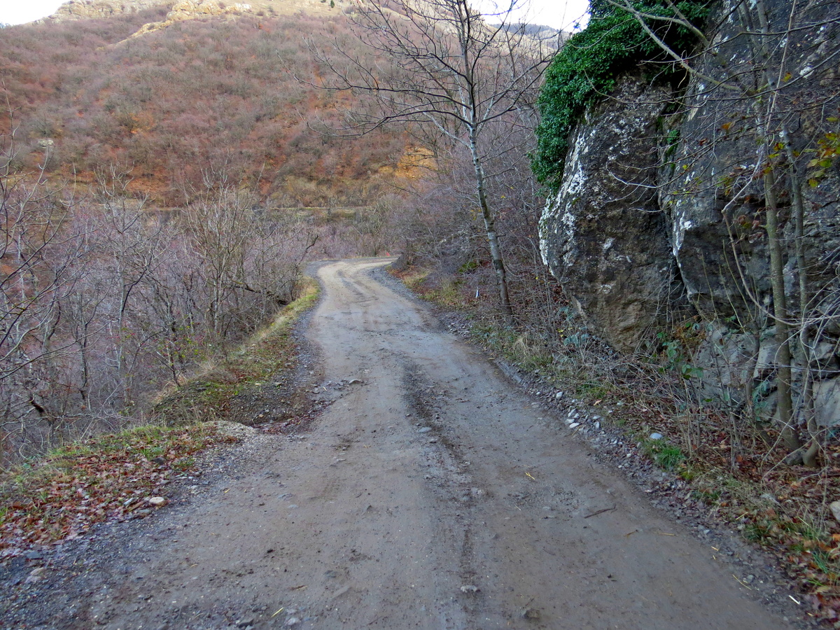 В почти последние выходные декабря, когда вся Феодосия была в густом тумане, мы просто выехали, даже не предполагая, где собираемся пройтись, по каким горам. Выехали рано и я с тоской смотрела через окошко на мелькающие в утренних сумерках горы Судака. Светать стало уже у Приветного. Значит здесь и повернём на дорогу Белогорск-Приветное. Просто поднимемся к нашим любимым Пикам над Зеленогорьем. Тем более, что туман остался за Судаком. Во время подъема мне пришла мысль про гору, на которую еще ни разу не поднимались. Миша, как услышал мои мысли и предложил посреди пути свернуть на манящую тропку. И мы свернули! Где-то там внизу, прямо под склоном, на небольшом ответвлении стоит и ждет наша машинка. Солнце в декабре низкое. Пока мы поднимались, оно лишь слегка начало освещать соседние вершины. Где-то вдалеке, Алушта, устроившаяся под Аю-Дагом тоже пребывала в утреннем тумане. Подъем по склону горы довольно крут. Но, он того стоит! Конечно же, уже наверху, у скал, слегка подрагивают колен