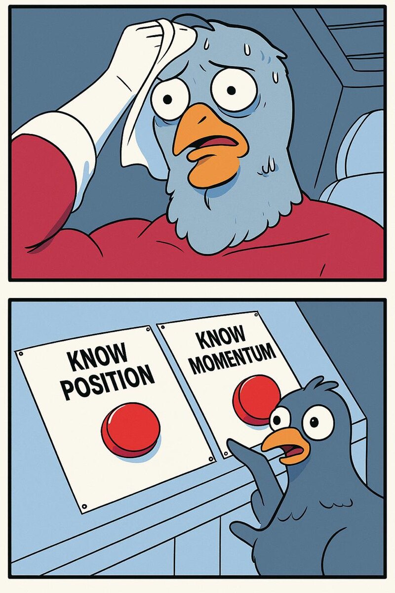 «Δx · Δp ≥ ħ/2, малыш… живи с этим.»