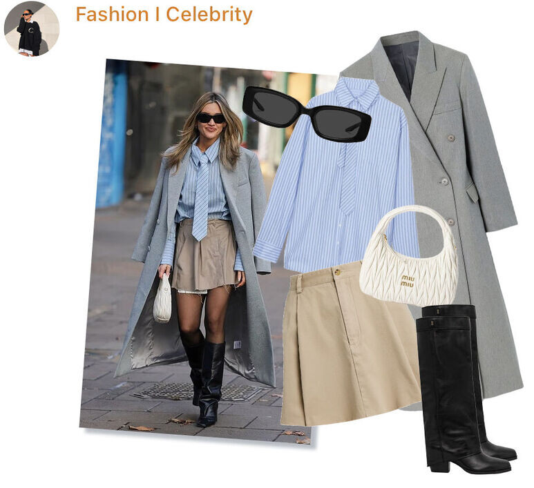 Папарацци застали 44-летнюю певицу, теле- и радиоведущую на выходе с радиостанции Heart Radio. Выглядела Эшли счастливой. И стильной! Мы тут же захотели разобрать образ на детали и повторить его! Первое, что бросается в глаза, — полосатая рубашка с галстуком. Похожую мы нашли в Befree. Рейтинг 4,9 — в отзывах хвалят качество и пошив, но предупреждают, что модель чуть большемерит. Бежевая плиссированная мини с рваным краем нашлась у бренда LuBvi.brand на Wildberries. Это юбка-шорты, внутри есть белая подкладка, которая снимается, и не нужно думать, что при стирке вещь может полинять. О покупке серого шерстяного пальто долго думать не надо — сейчас как раз идут предновогодние распродажи, а это хорошая возможность урвать качественную модель по адекватной цене. Нам нравятся эти варианты: Erist.store и Lime из смесовой шерсти, Pompa — из премиальной шерсти с мембраной съемной подстежкой. Сапоги-гармошки ждут, когда мы придем за ними в Ekonika: одни и вторые. Модели демисезонные, высота каб