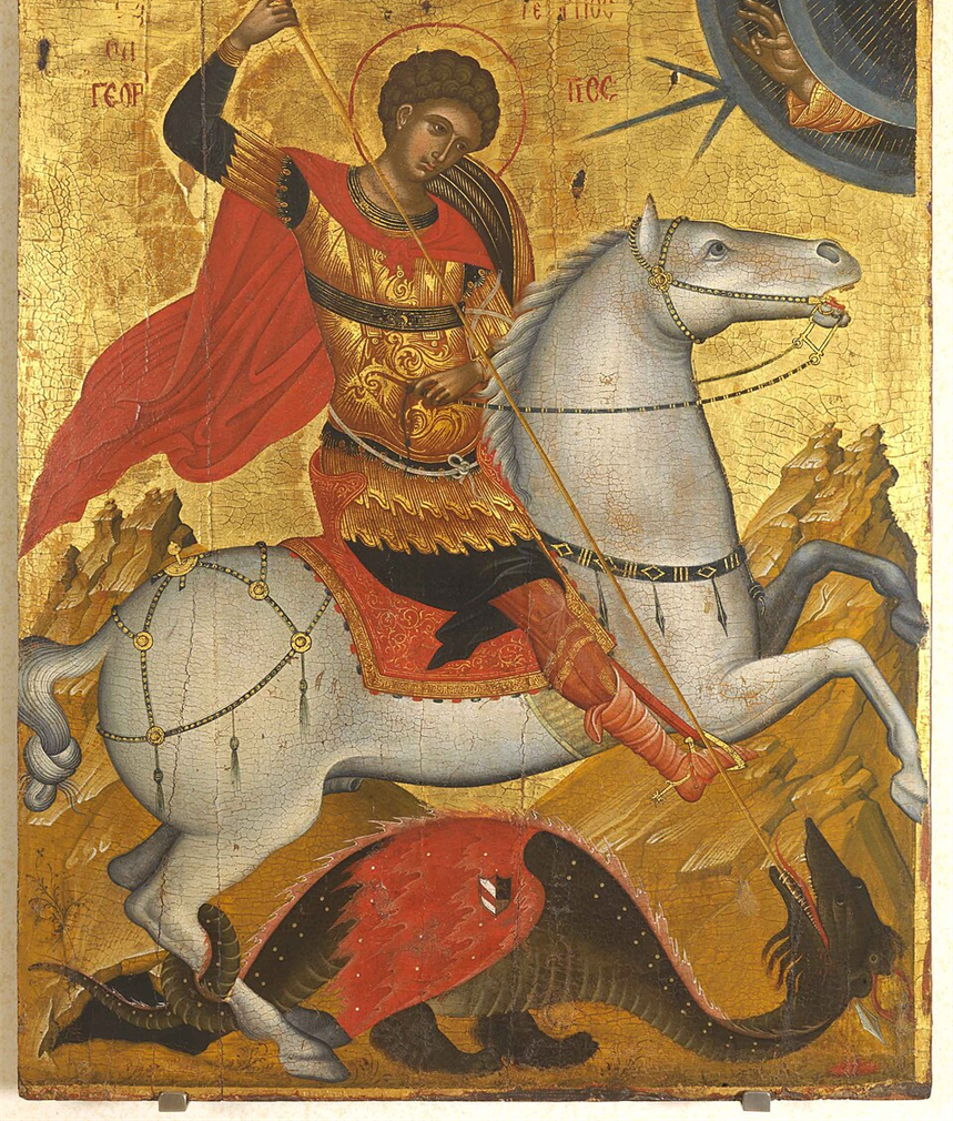 В-третьих, его иконография была динамичной и понятной. Образ всадника, побеждающего дракона, был зрелищным, ясным без слов символом победы добра над злом. Он работал как на уровне образованой элиты, так и на уровне простого воина или крестьянина.