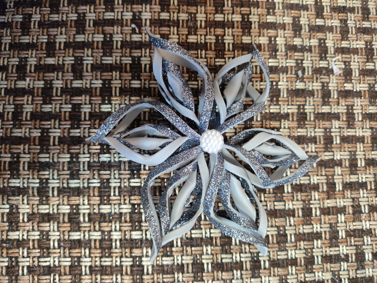 Для работы нам понадобится глитерный фоамиран, ножницы, термопистолет, линейка , карандаш и что-нибудь для украшения серёжки, я взяла полубусину.