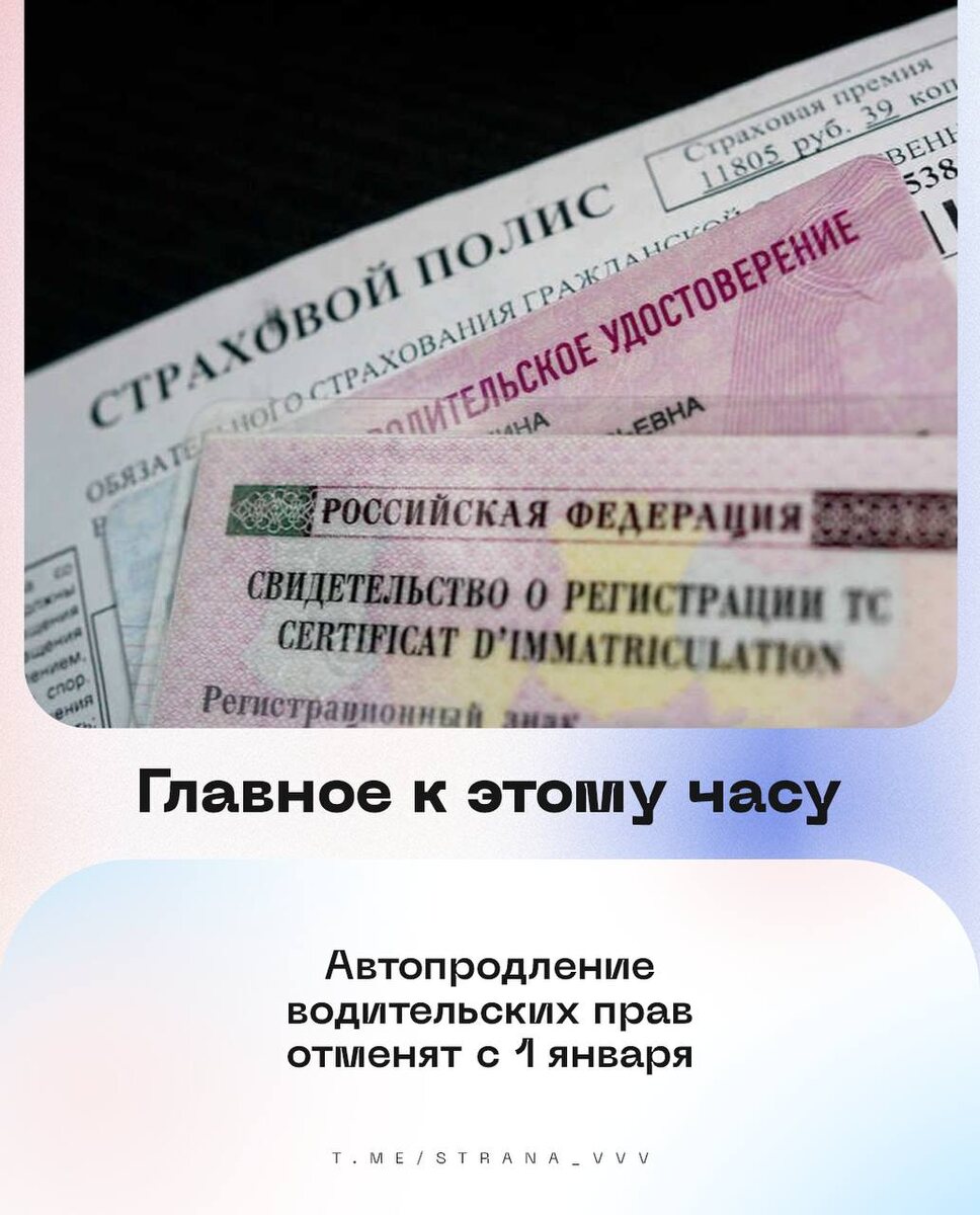 : 🔹Автопродление водительских прав отменят с 1 января. 🔹«Справедливая Россия» предлагает ввести административную ответственность за оскорбление школьных учителей. 🔹Жительница Дальнего Востока купила 20 лотерейных билетов и выиграла более 31 млн рублей. 🔹Более 270 рейсов задержали на прилет и вылет во Внукове и Шереметьеве за время действия ограничений, на запасные аэродромы ушло 69 самолетов, отменено 42 рейса. 🔹Самозанятые смогут оформлять себе больничные — депутат Нилов. 🔹 Водитель легковушки и трое его пассажиров погибли на месте в ночной аварии в Башкирии: столкнулись «Газель» и «Лада Гранта». 💰Курсы валют: доллар — 📉77,69; евро — 📉91,21; юань — 📉11,04. ✅ «В Стране» в MAX