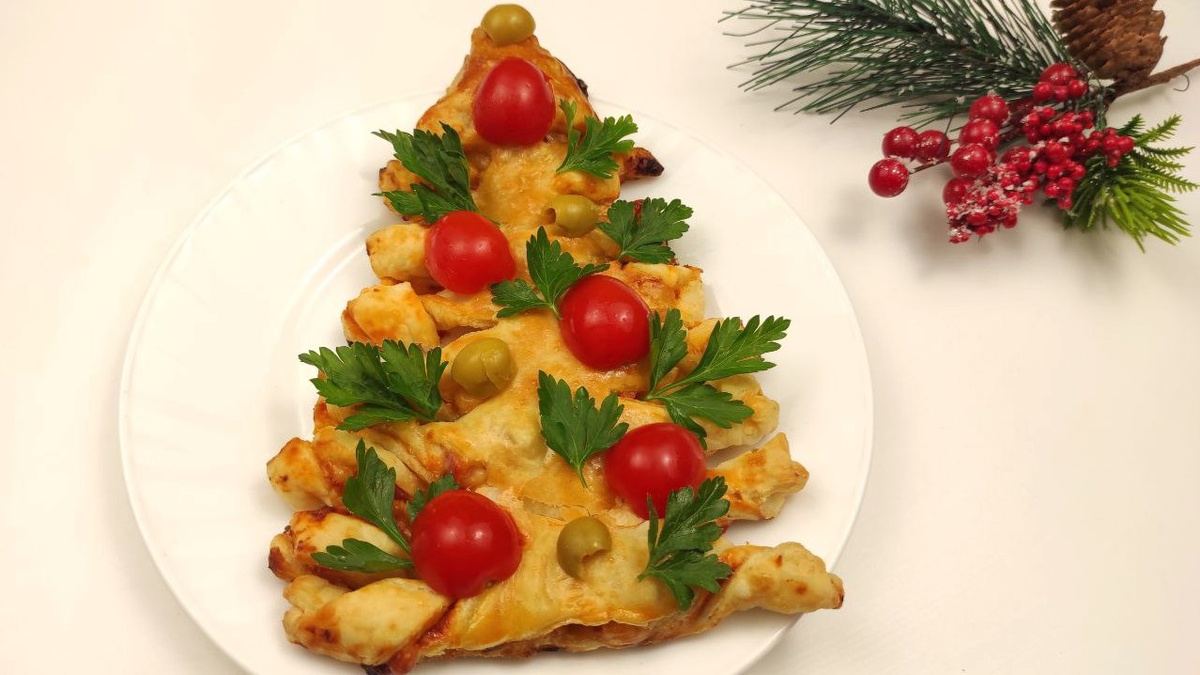 Пирог "Елочка" из слоеного теста с сыром на новогодний стол 2026