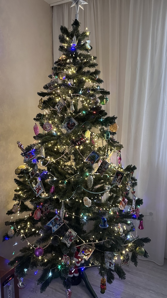 Уже неделю нас радует наша елочку, мы ее назвали ретро-елка, т.к на ней половина игрушек очень старые, лет по 40 им, мужу достались по наследству. Я еще докупила гирлянды в виде флажков с изображениями на каждом как на старых советских открытках. Мне кажется получилось красиво и по домашнему. А вам понравилась?